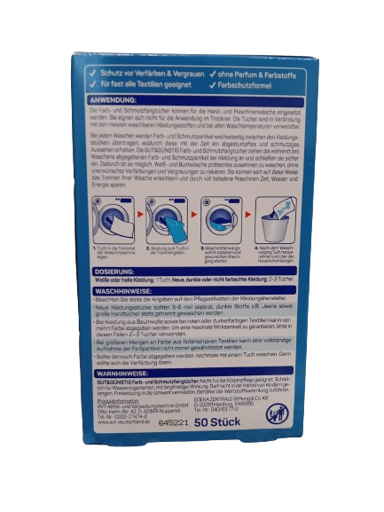 Chusteczkę należy wrzucić do bębna pralki razem z odzieżą przed rozpoczęciem cyklu. W zależności od tego, jak intensywne są kolory ubrań oraz jak duży jest stopień ich zabrudzenia, zaleca się stosowanie od 1 do 3 ściereczek na jedno pranie. Po zakończeniu programu zużytą chusteczkę należy wyrzucić.