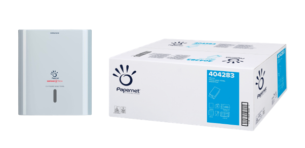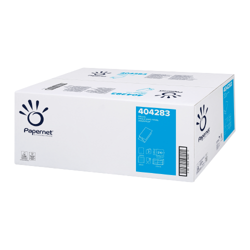 - Ręcznik papierowy w składce ZZ Papernet (404283) – 15 opakowań po 210 listków dwuwarstwowego celulozowego ręcznika w rozmiarze 21 x 22 cm.