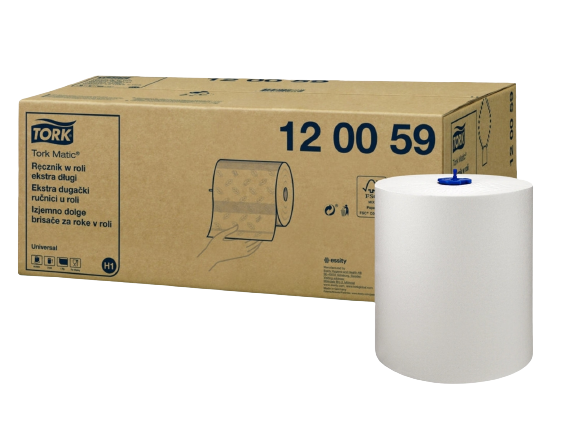 Ręcznik Tork Matic Universal 120059 to wysokiej jakości ręcznik przeznaczony do dozowników Tork Matic. Wykonany jest z czystej celulozy. Jest jednowarstwowy, bardzo delikatny i miękki. Charakteryzuje się wyjątkową chłonnością i wytrzymałością w stanie mokrym. Szybko i dokładnie osusza dłonie, zbiera płyny i osusza powierzchnię.