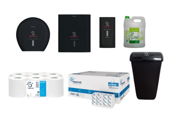 Zestaw dozowników do łazienek wykonany z antybakteryjnego i wytrzymałego tworzywa ABS w kolorze czarnym oraz komplet pasujących papierów i wkładów. Dozowniki montuje się na ścianie, są funkcjonalne i niezawodne w codziennym użytkowaniu. Znajdują szerokie zastosowanie w szkołach, szpitalach, lokalach usługowych oraz wszędzie tam gdzie wymagane jest utrzymanie higieny i czystości na wysokim poziomie.