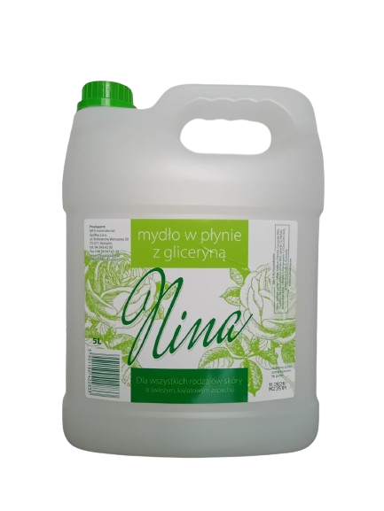 - Mydło w płynie Nina 5l – delikatne mydło z dodatkiem gliceryny o delikatnym kwiatowym zapachu